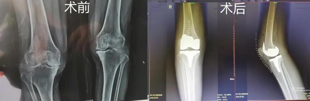 和平國(guó)際醫(yī)院副院長(zhǎng)、骨科中心主任劉丹在診斷后發(fā)現(xiàn),老人雙側(cè)膝關(guān)節(jié)患有骨性關(guān)節(jié)炎,右側(cè)膝關(guān)節(jié)較為嚴(yán)重,而且關(guān)節(jié)磨損嚴(yán)重,關(guān)節(jié)間隙基本消失。