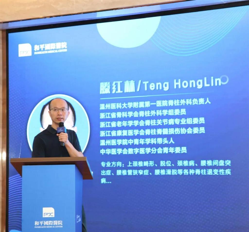 解放軍總醫(yī)院骨科副主任醫(yī)師、黃鵬教授,溫州醫(yī)科大學附屬第一醫(yī)院脊柱外科主任、主任醫(yī)師騰紅林教授,溫州和平國際醫(yī)院董事長、院長薛志輝,溫州和平國際醫(yī)院副院長、骨科主任醫(yī)師劉丹,溫州和平國際醫(yī)院副院長周健等專家嘉賓出席了活動。