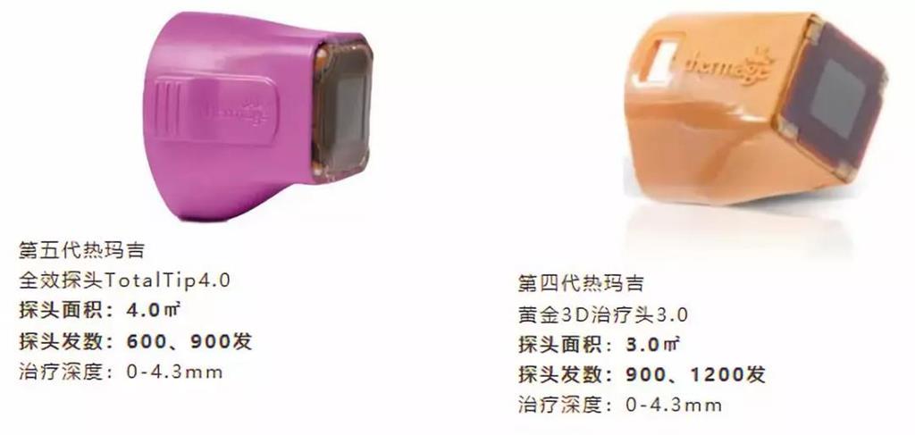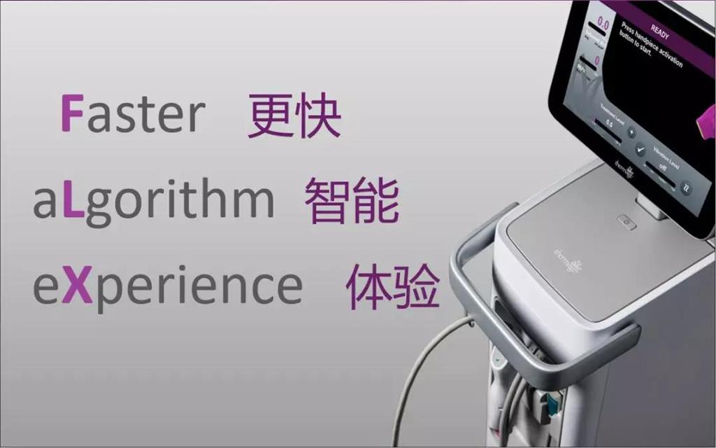 更快這一點其實和治療頭緊密相關(guān)。和第四代的黃金探頭一樣,都是可以達到皮下的4.3mm,只不過現(xiàn)在的治療頭面積比以前的大33%,變大了之后就加快了整個治療的速度,縮短了治療時間。